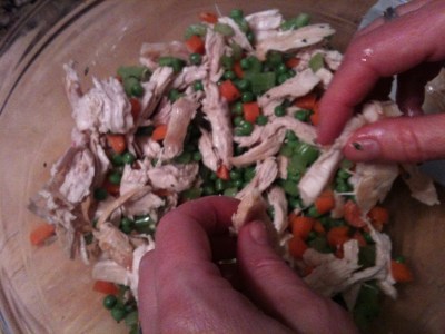 - 2 cups torn up cooked chicken breast