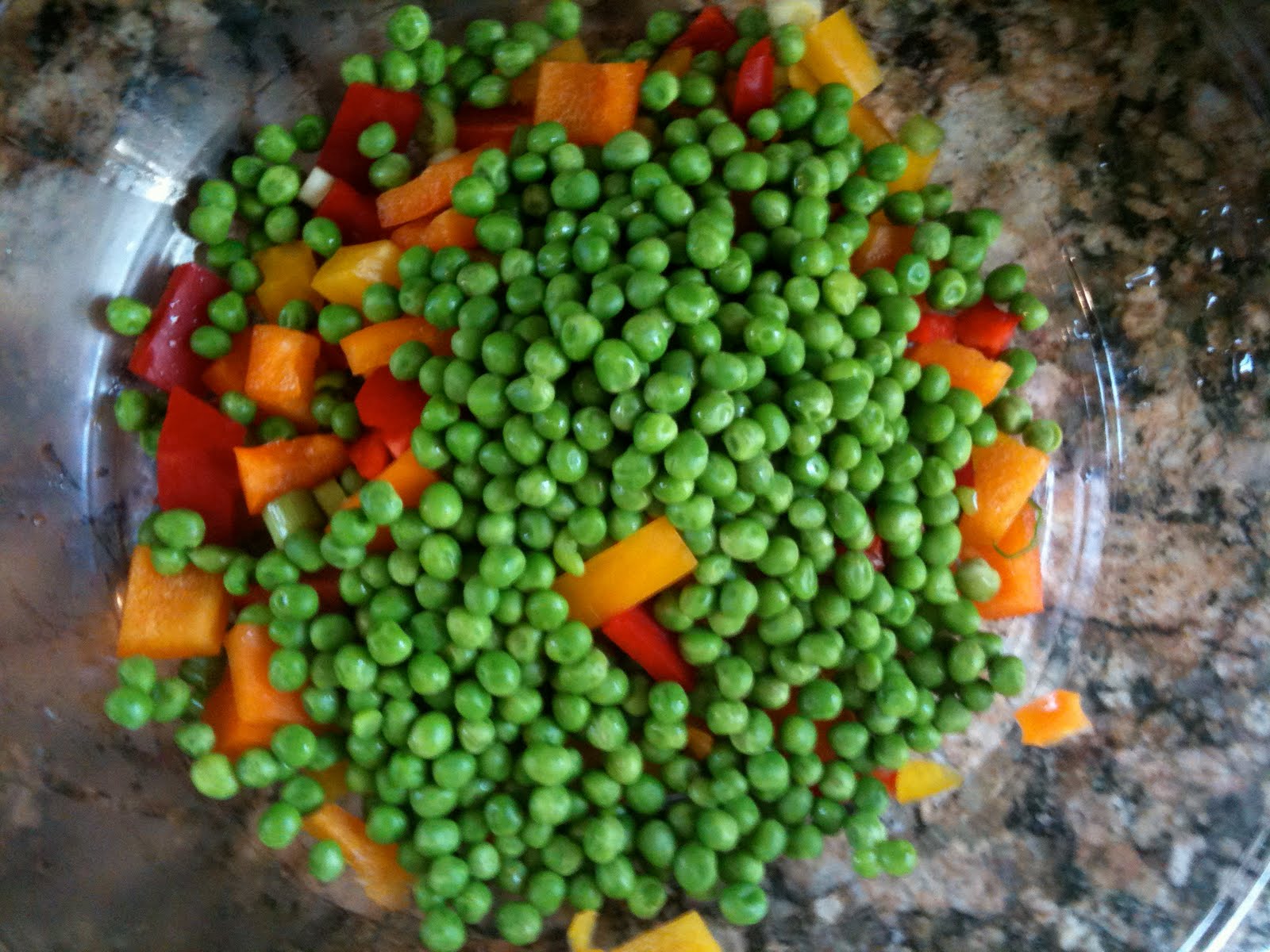 1/2 cup each of chopped gold, red and orange bell peppers.
