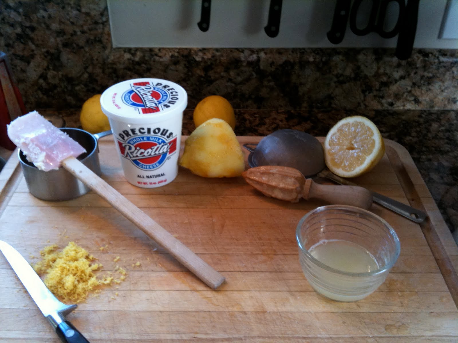 Add the eggs, 1 at a time, beating until incorporated. Add the ricotta cheese, lemon juice, and lemon zest. Beat to combine. Stir in the dry ingredients.