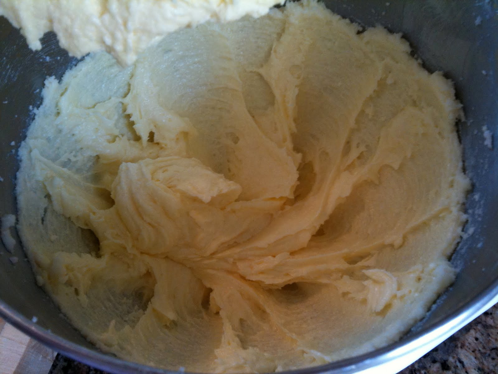 In the large bowl combine the butter and the sugar. Using an electric mixer beat the butter and sugar until light and fluffy, about 3 minutes.