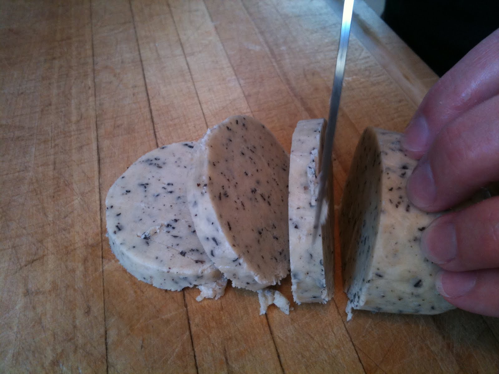 Place dough on a sheet of plastic wrap, and roll into a log, about 2 1/2-inches in diameter. Tightly twist each end of wrap, and chill in refrigerator for 30 minutes.
