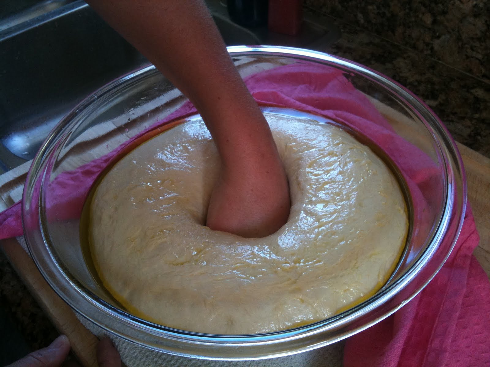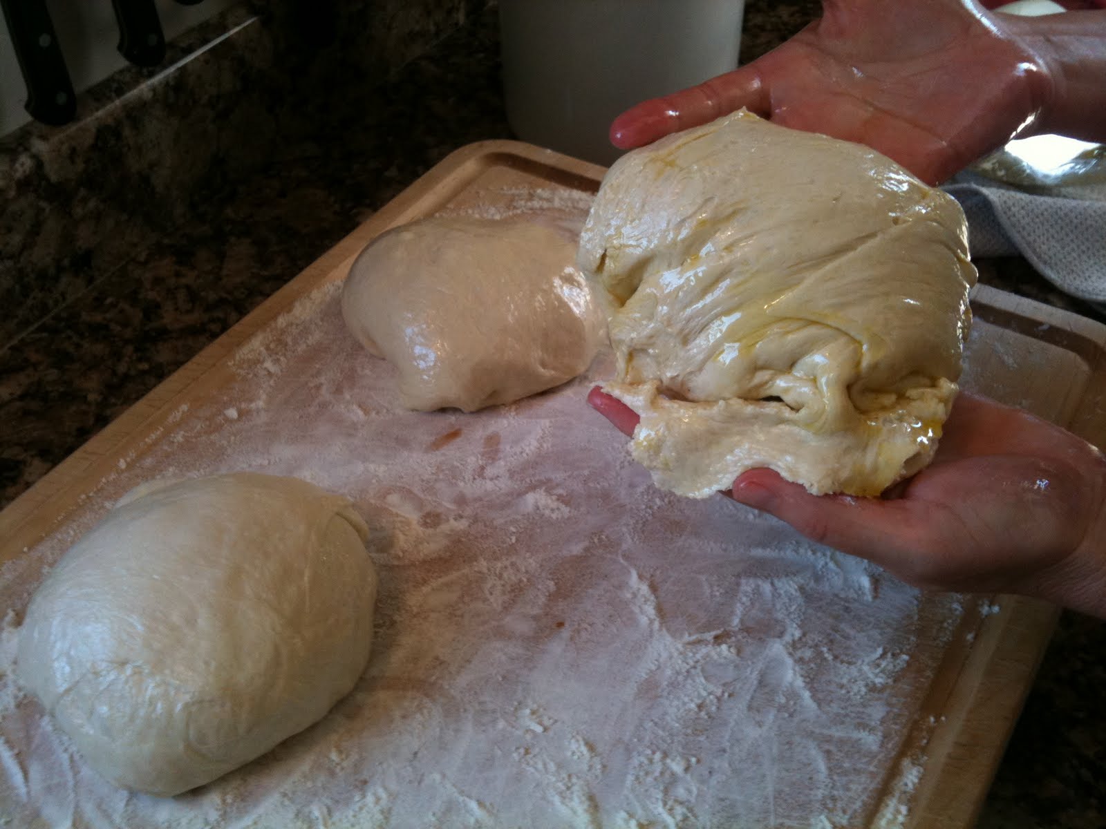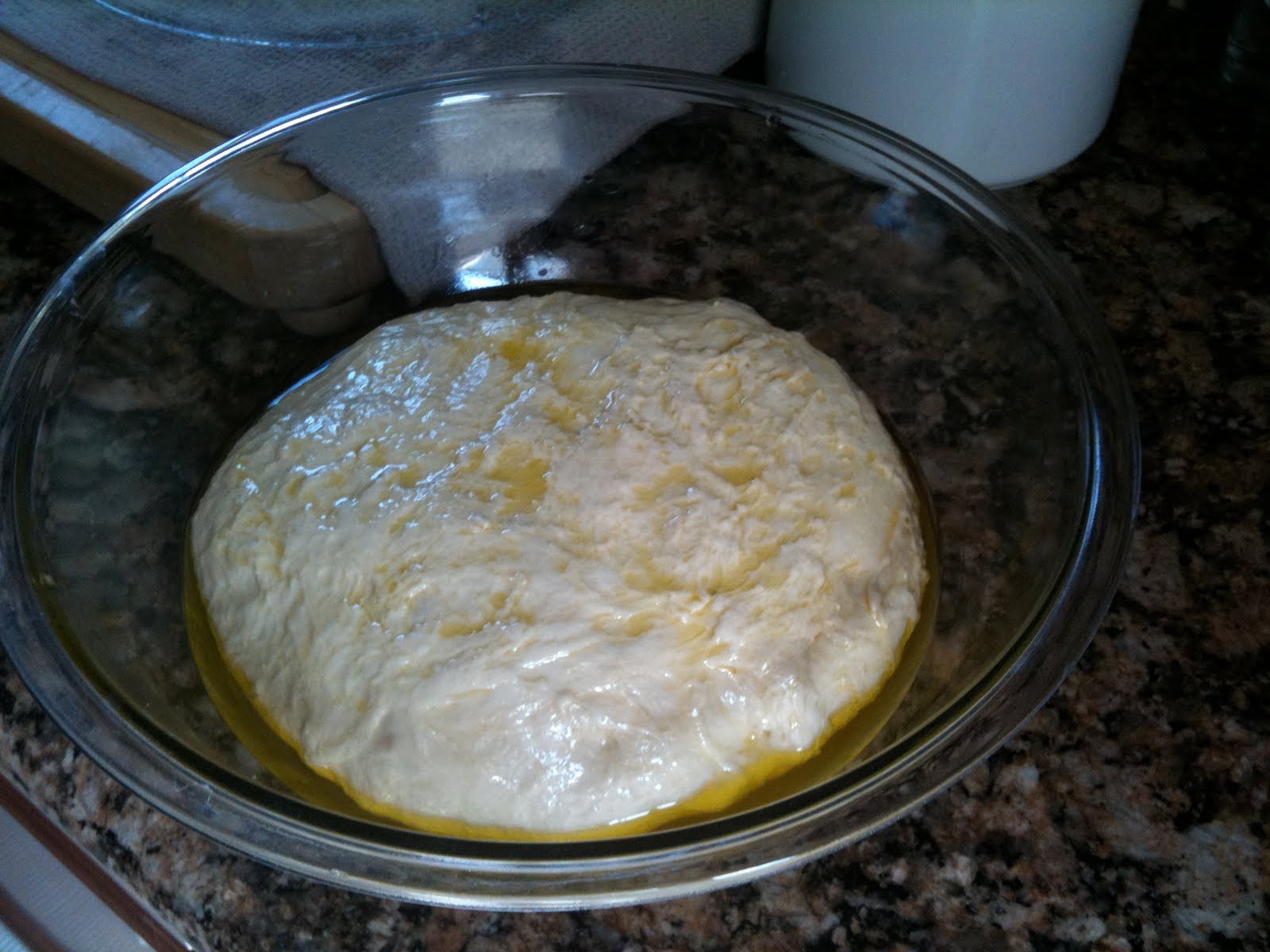 Shape into a ball, place in bowl with olive oil and cover with a towel, and let rise till doubled, about