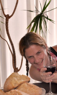 After 5 minutes mist one more time, and reduce the oven to 400 degrees. Bake another 30 minutes or so, till done. The bottom should have good hollow sound to it and a dark crust. Let cool a bit, then go at it !! There is pretty much nothing better than warm bread right out of the oven. Here’s a goofy picture of me and my bread, it was yummy.