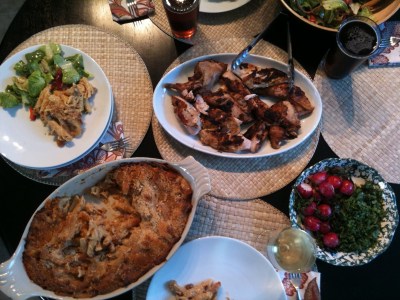 Towards the end of cooking I threw on some radishes just for fun, they were delish grilled, try it. Jennay made Mac n Cheese to go with our meal and it was splendid, she will be blogging this recipe very soon, yes that’s right Jennay I just called you out Sistah.