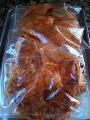 I rubbed them down with the marinade, put them into bags and set them in the fridge to absorb all the goodness for a least 4 hours.