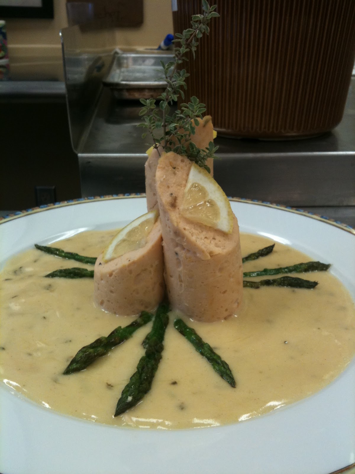 Salmon Mousse with a lemon thyme beurre blanc sauce.