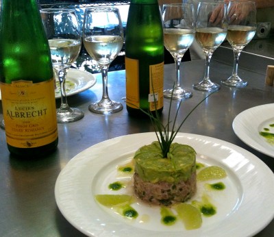 Ah Friday, last dish and lunch of Ahi Tartre with a lovely french Pinot Gris. School is so fun !