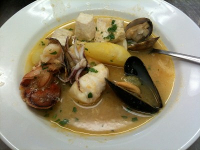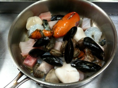 my pot filled with all the seafood for La Bouillabaisse Provencal