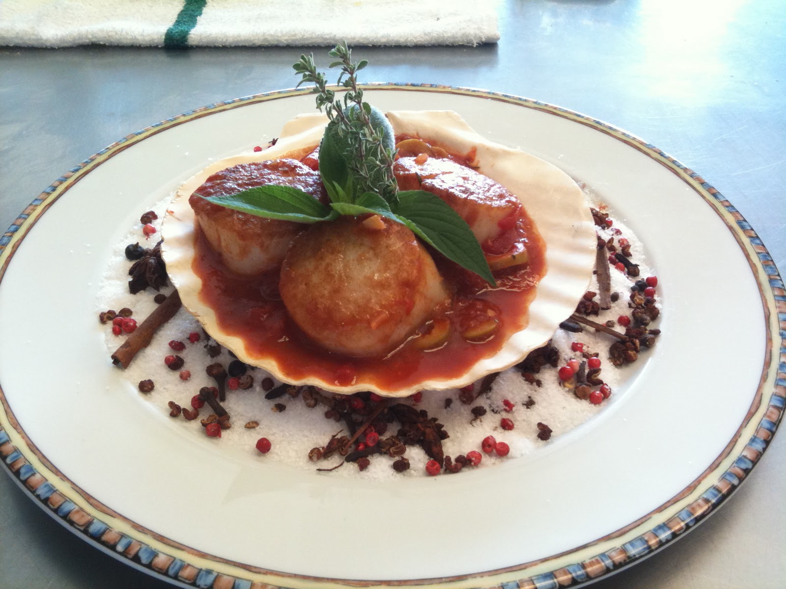 This week was all about France, we did Quiche, French Onion Soup, Poule au Pot al Creme, Coquille St. Jaques Provencal, Boeuf Bourguignon, Poulet Chassuer, Escargot a la Bourguignon, Crepes, Tarte Tatin, Duck a la Orange, La Bouillabaisse Provencal and Riz de Veau Braise aka Sweet Breads. The Sweet Breads were the star of this week. I’d never had them and it was a very interesting process to cook them. I’ll be honest I was a little freaked out by the visual as we went through the process of preparing them. France was fun, can’t wait to go visit. Here’s some shots of this week.