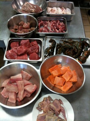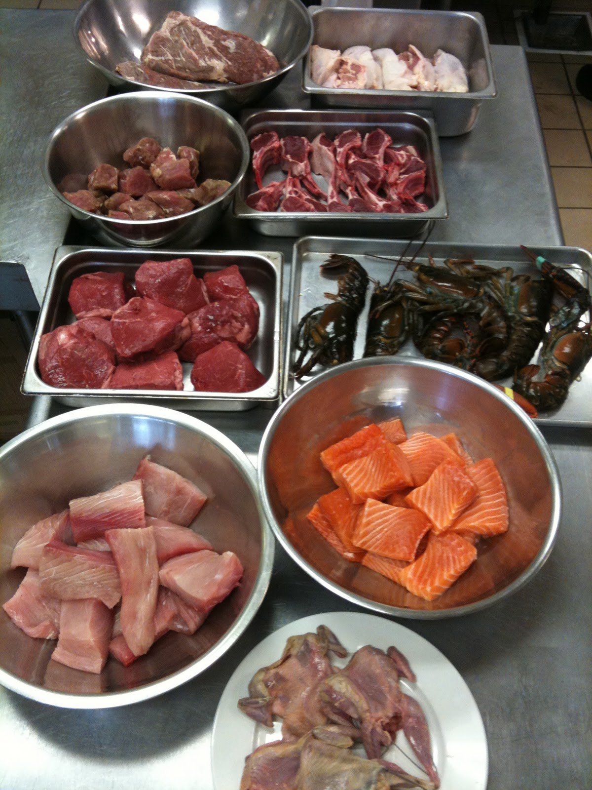 tri tips, chicken breast, quail, lobster, shrimp, filet mignon, salmon, mahi mahi, pork medallions, cornish game hens, top sirloin, lamb chops