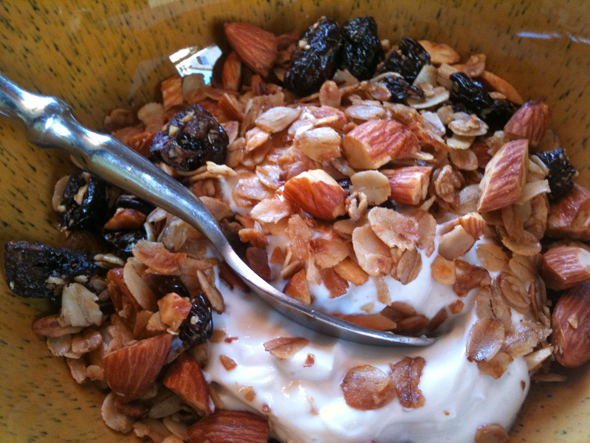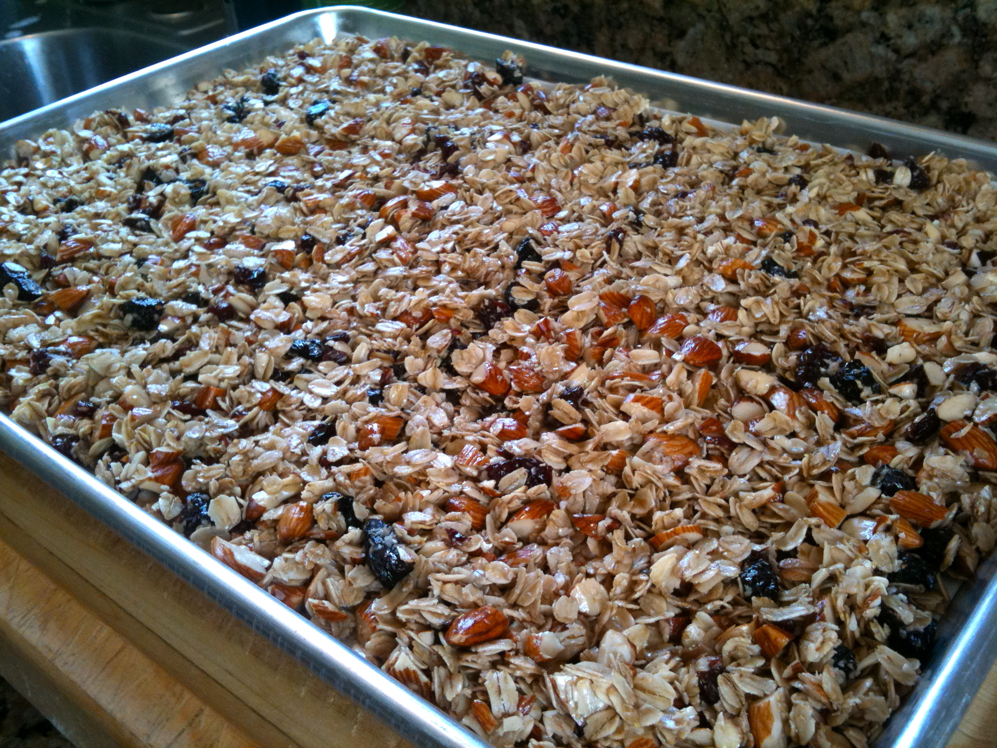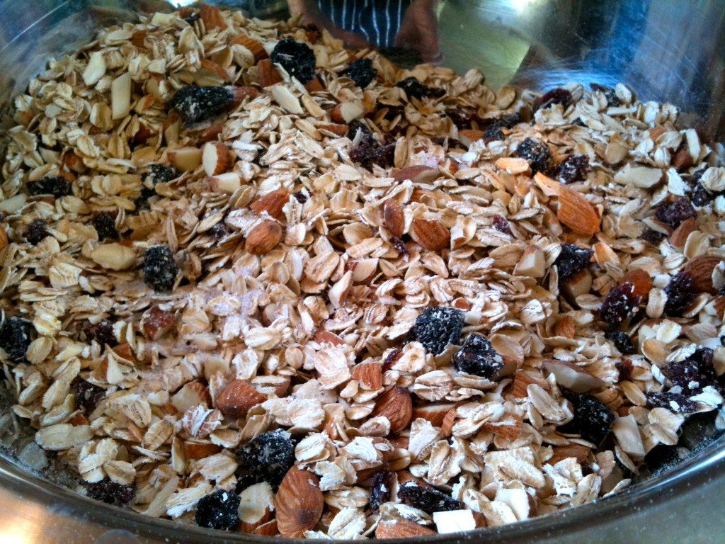 While I was in Texas with the Gilded Girls – Debbie made Granola. You know when you watch someone cooking and they do it all from memory? It’s effortless, easy to watch and the result is always tasty and filled with love. While she was hosting this huge event with a million things still to be done – she whipped up the best granola I’ve ever had. I watched and took mental notes. Once I was home I set to work on replicating what she had done so easily. After testing a few different options and texting her for the recipe in her head I came up with this. It’s really about the ratios of your wet to dry and the flavors you add, like a blank canvas you make it all your own. Homemade is ALWAYS better, you know exactly whats in it and its way more cost effective.