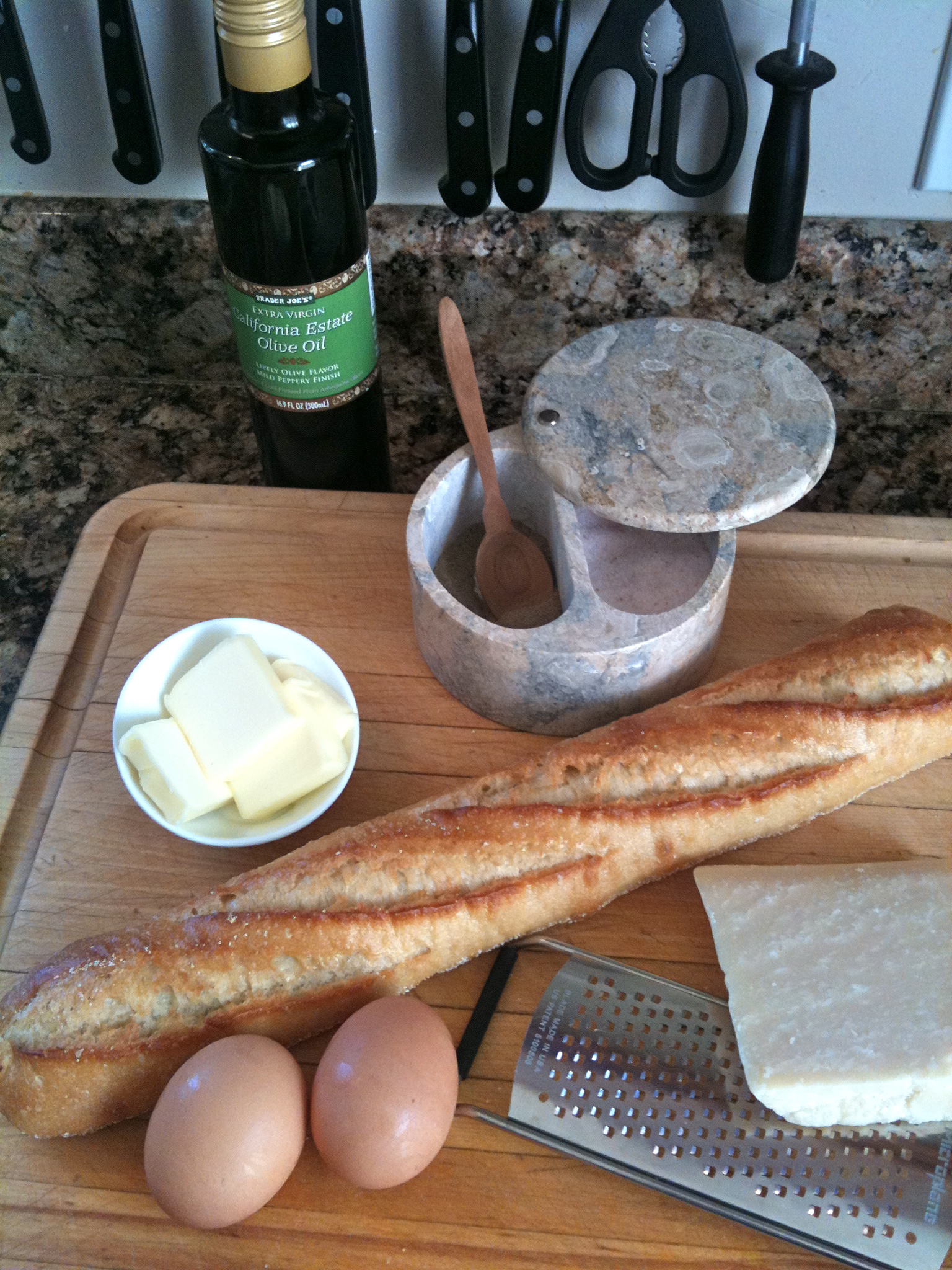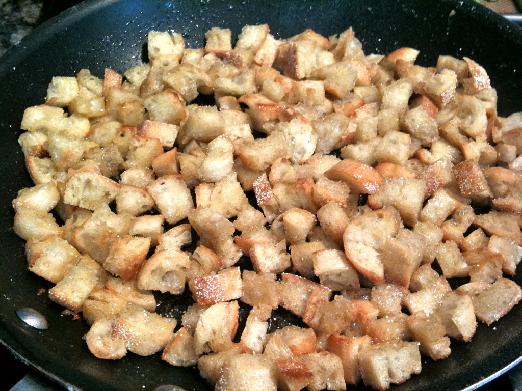 - 1 baguette cut into small cubes, about 4 cups, day old is best