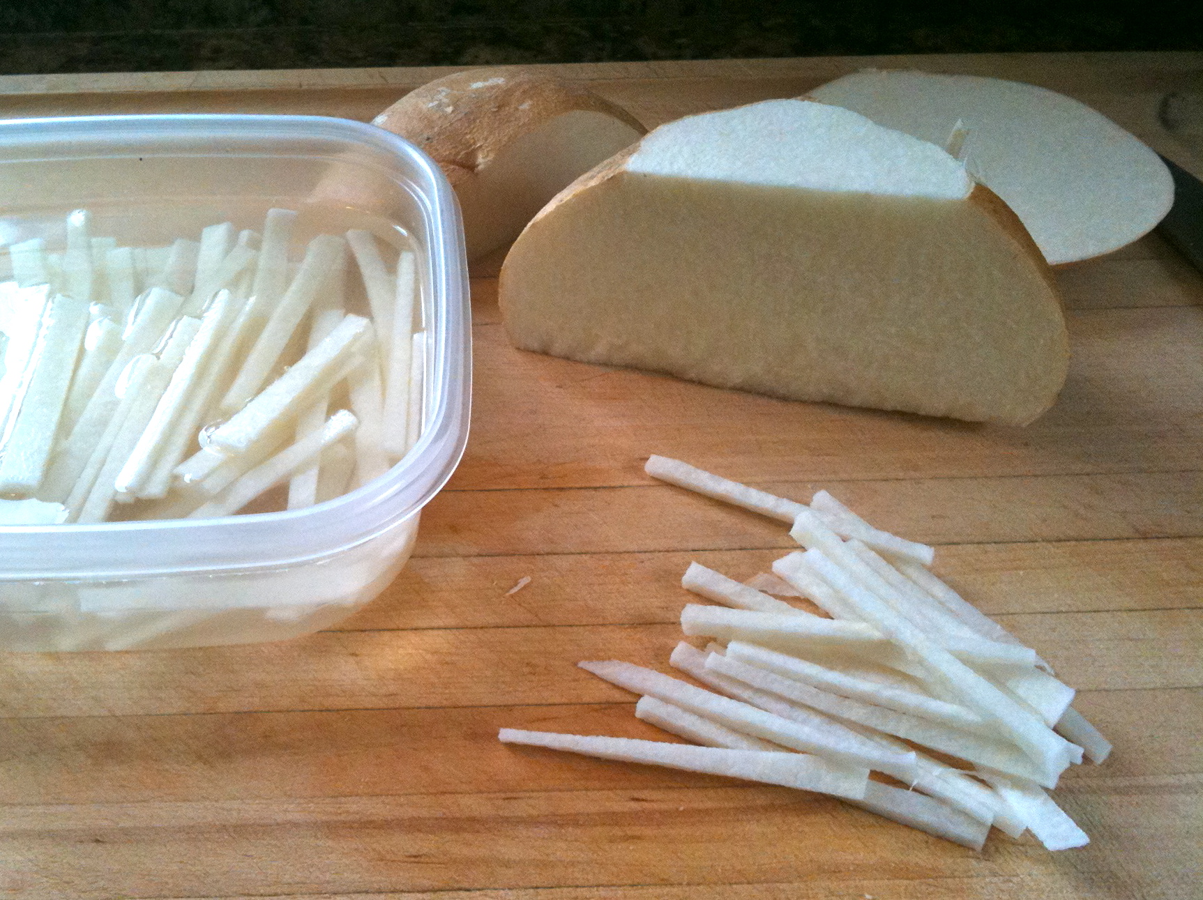 Jicama, cut into sticks/julienne hold in water until ready to serve.