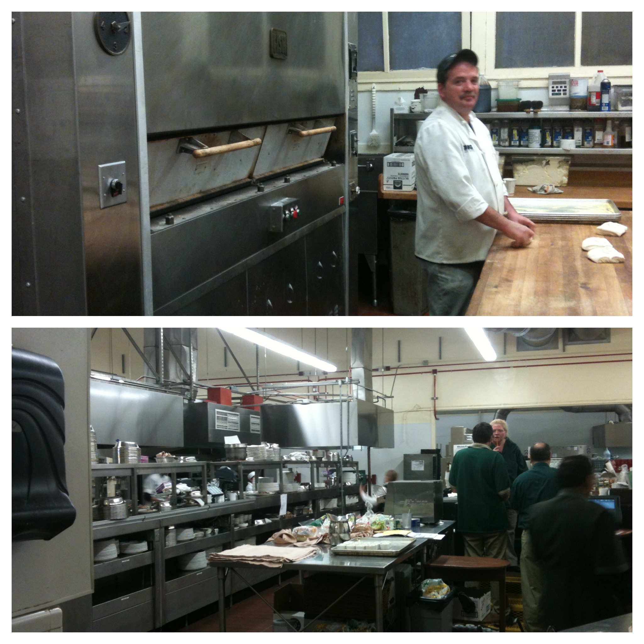 Top photo- Bruce the baker, makes ALL the bread, amazing. Bottom photo- front of the line.