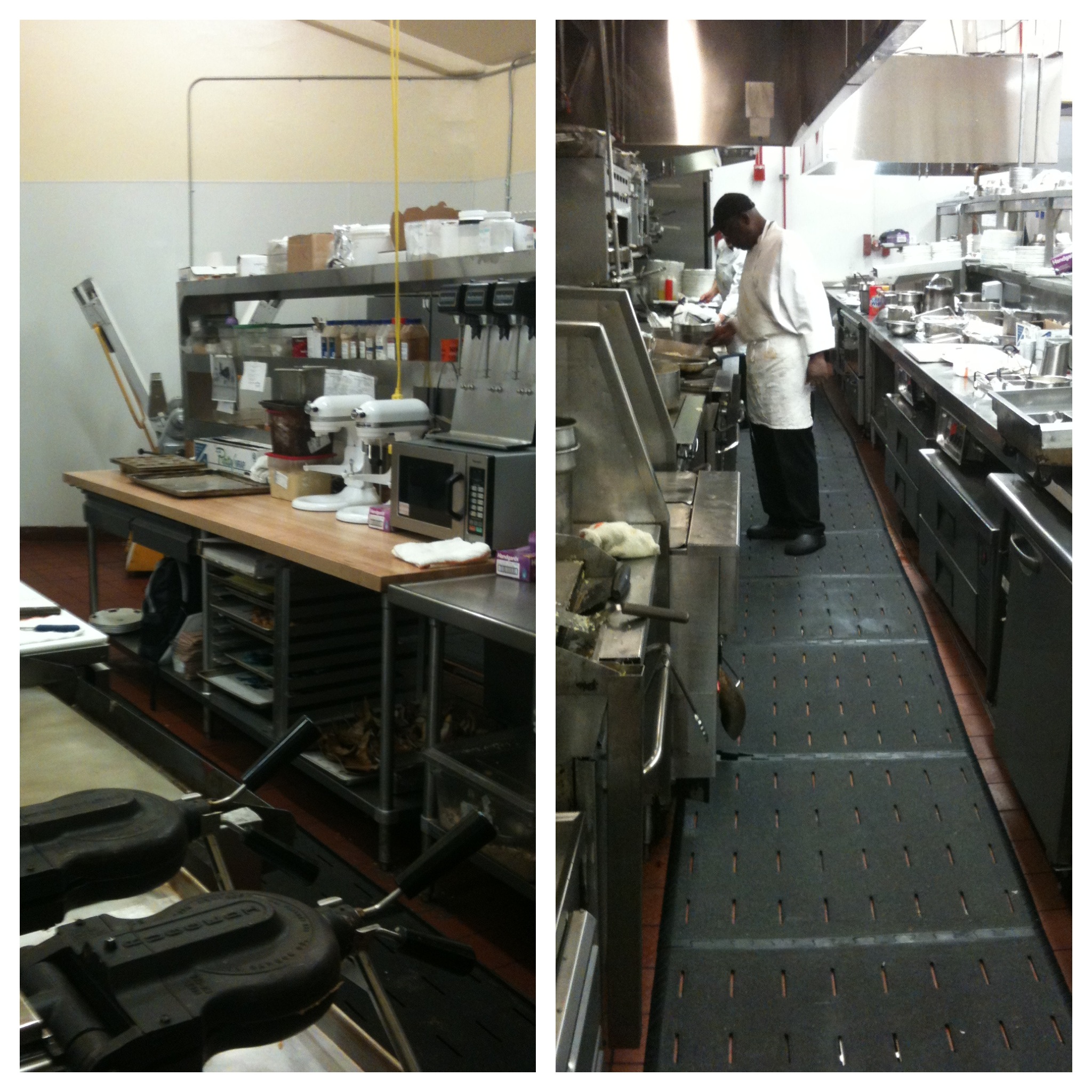 Left photo- pastry kitchen where I spend my day.