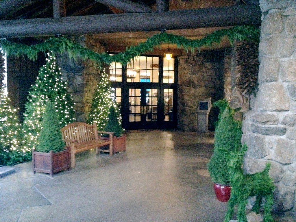 Christmas is starting to show up the valley, this is the entrance to the Ahwahnee