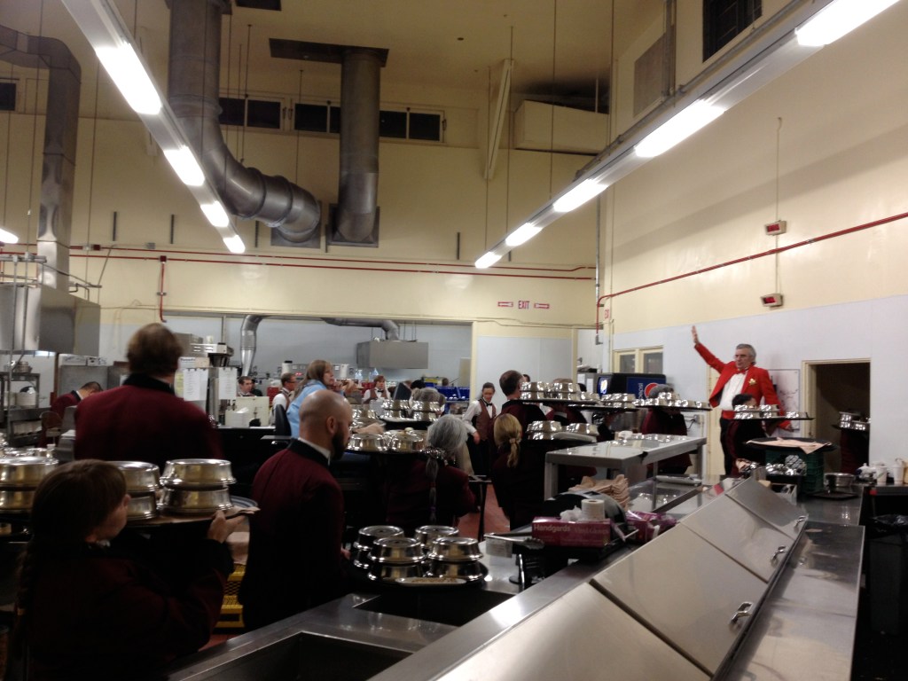 Here is a shot of the servers waiting for their cue to enter the dinning room, see the guy in the red coat and tails…hand up meant silence….I’ve never heard a kitchen so quite. It was interesting to see this well choreographed event go down. This year was the 84th time it’s be done.