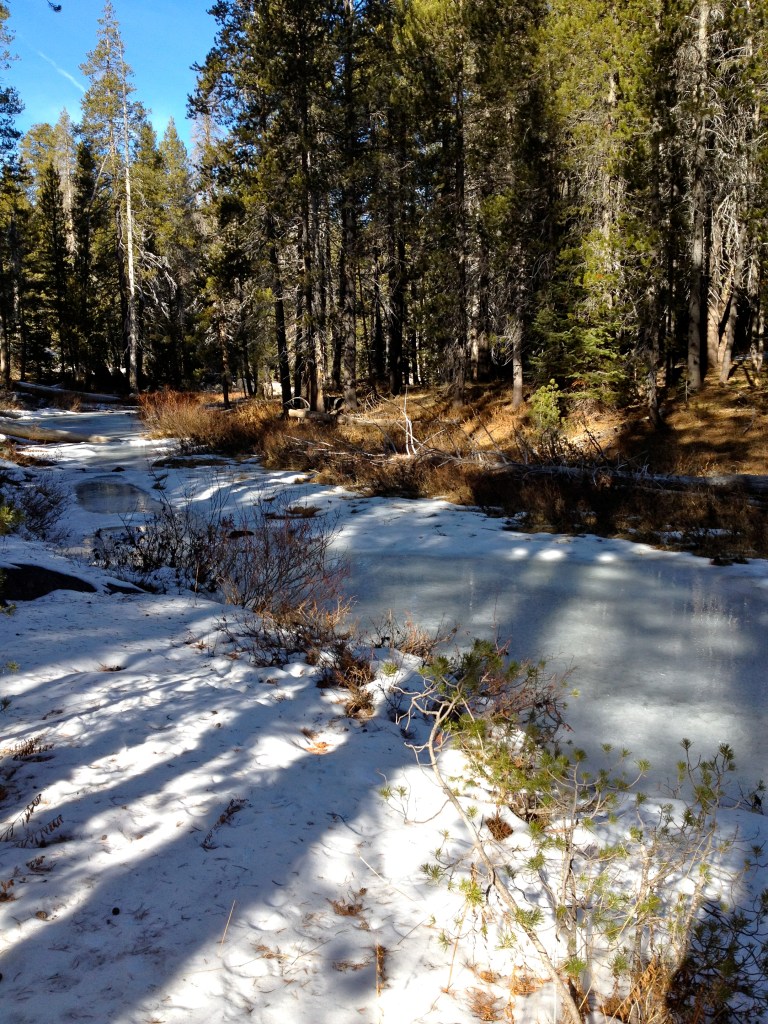 This is the upper Bridal Veil river before it falls into the valley….Frozen. We had a little picnic here. The temp was about 59, crazy warm for December, what little snow was up there was melting fast.