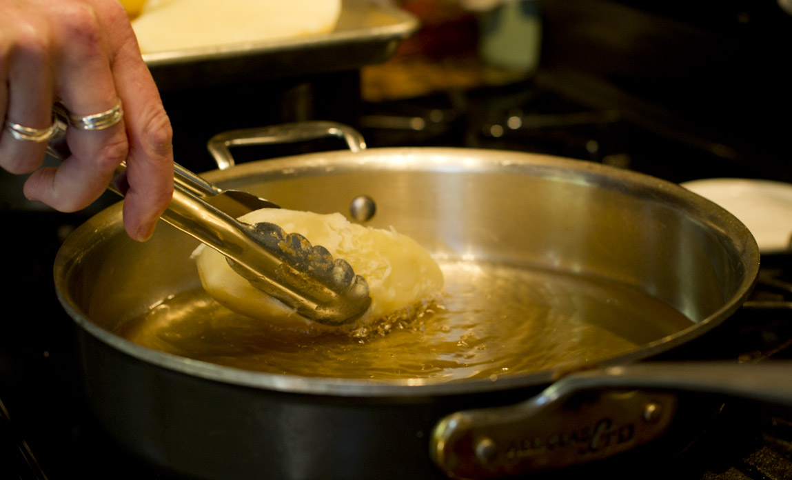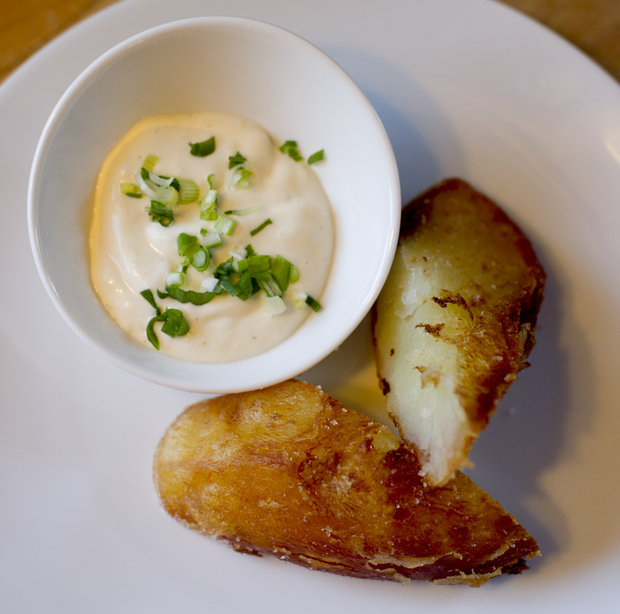 Remove from hot fat with slotted spoon and drain on paper towels, immediately sprinkle with sea salt and let cool a bit. Serve at once or just stand over the plate and eat them all like we did with a garlic aioli and chopped green onions.