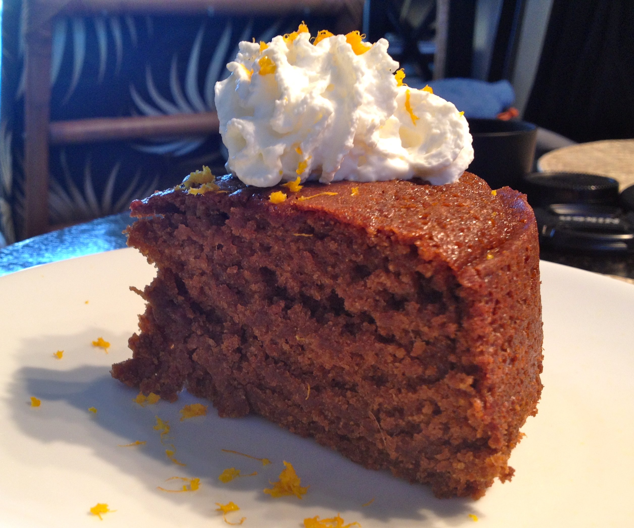 Get your whoop cream ready and dollop it generously over a warm slice of ginger cake. Remember when I say whoop cream, I mean make it yourself, no canned crap. Whip heavy whipping cream with a little powdered sugar or no sugar until fluffy, maybe add a bit of vanilla extract and zest some orange rind over the whoop like this