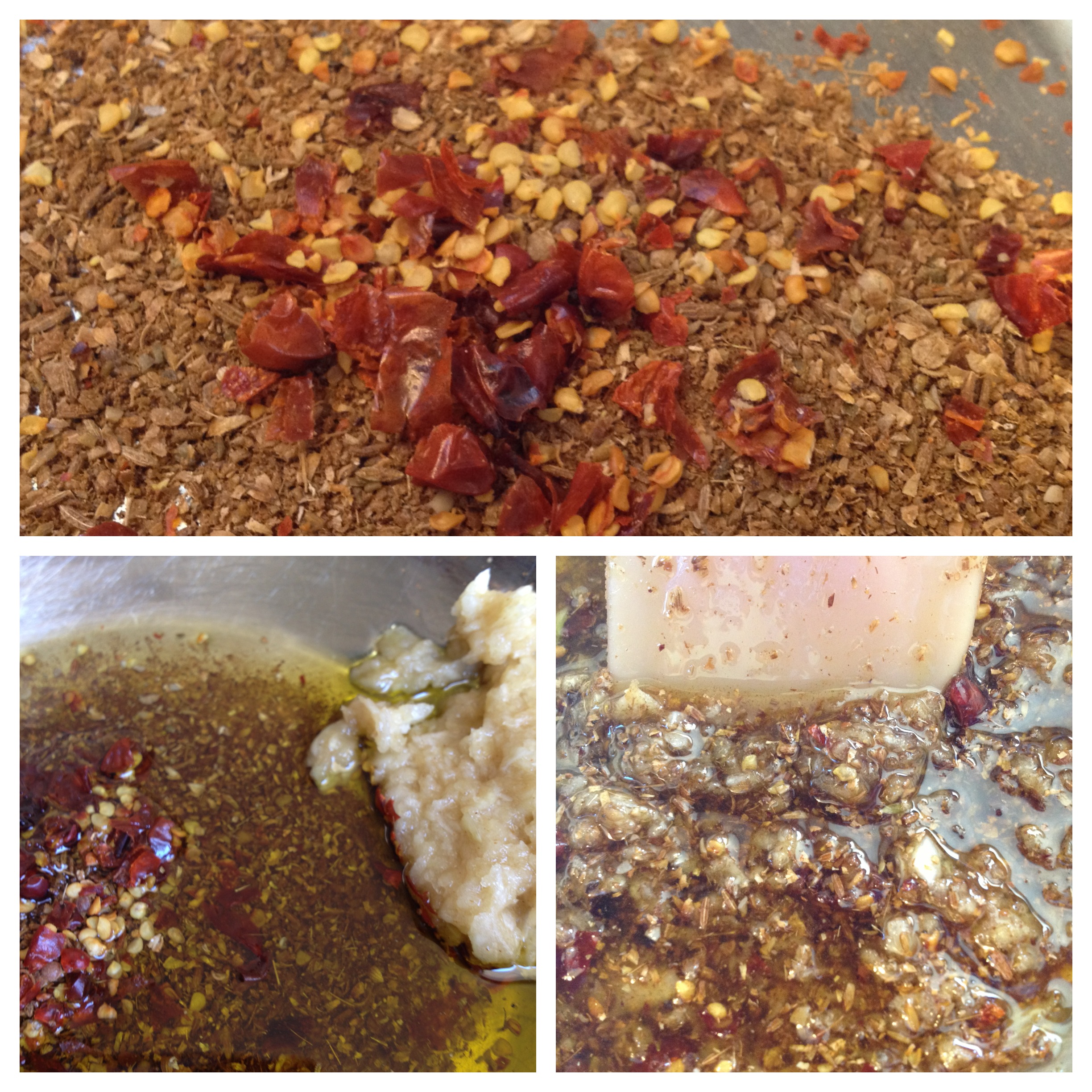 Start by toasting the spices in a small saute pan over medium high heat, careful not to burn them. When you start smelling their aroma, they’re done. Set aside and let cool.